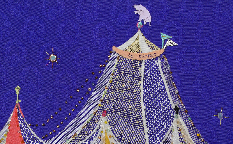 material : レース、ビーズ、スパンコール、ラインストーン、服飾パーツ、着物生地(全てアンティーク&ヴィンテージ)仏メトロ切符,刺繍糸 ...etc.