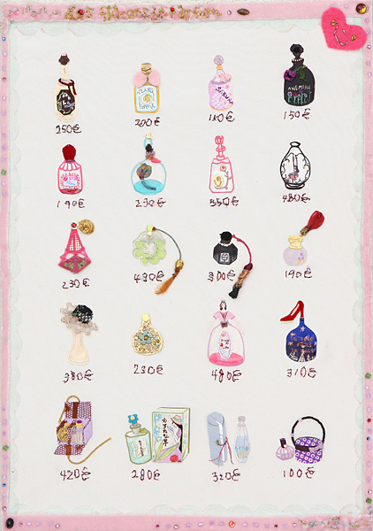 material : レース、各種カラーペーパー、刺繍糸、ラインストーン、グリッター、ベルベット、スパンコール、生地